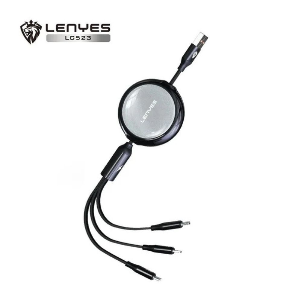 The Lenyes LC523 combines functionality and portability in one smart accessory. With three different connectors, it supports a wide range of devices, making it a reliable solution for families or individuals with multiple gadgets. The retractable design keeps the cable compact and tangle-free, ideal for carrying in bags or pockets without mess. Its black finish ensures a sleek and modern appearance, while the strong build provides durability for long-term use. Offering both charging and data transfer capabilities, the LC523 is perfect for travel, office, or home use. Simplify your charging routine with the versatile Lenyes LC523 cable.