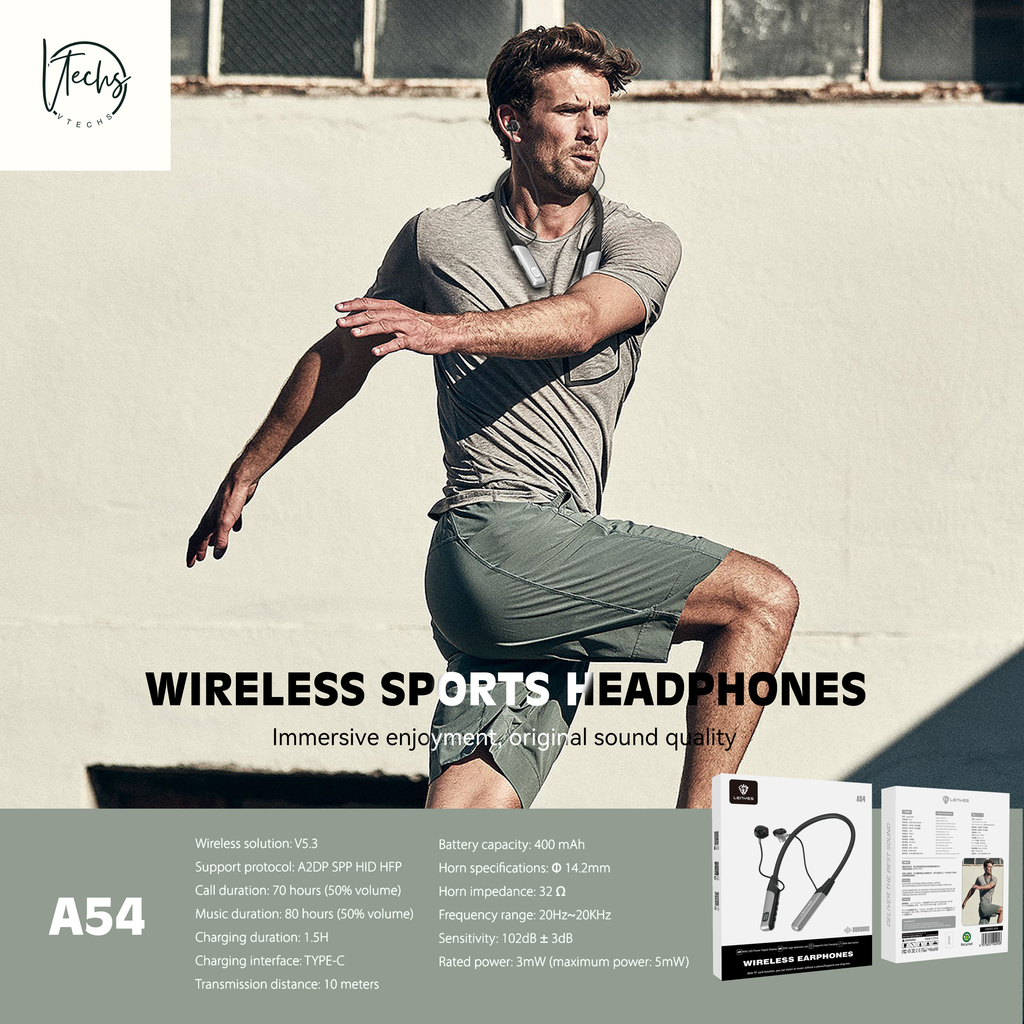 The Lenyes A53 are sports headphones designed to keep up with you. With Bluetooth 5.3, great autonomy, reinforced materials and protected fast charging, they are ideal for intense workouts, long days and music without pauses.