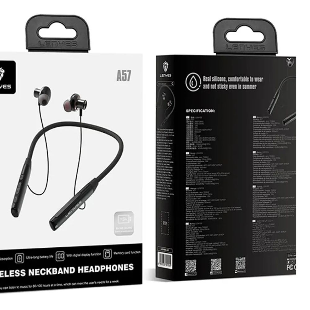 Lenyes A57 Wireless Neckband Headphones – Long-lasting wireless earphones with magnetic buds and built-in digital display for convenience on the go.