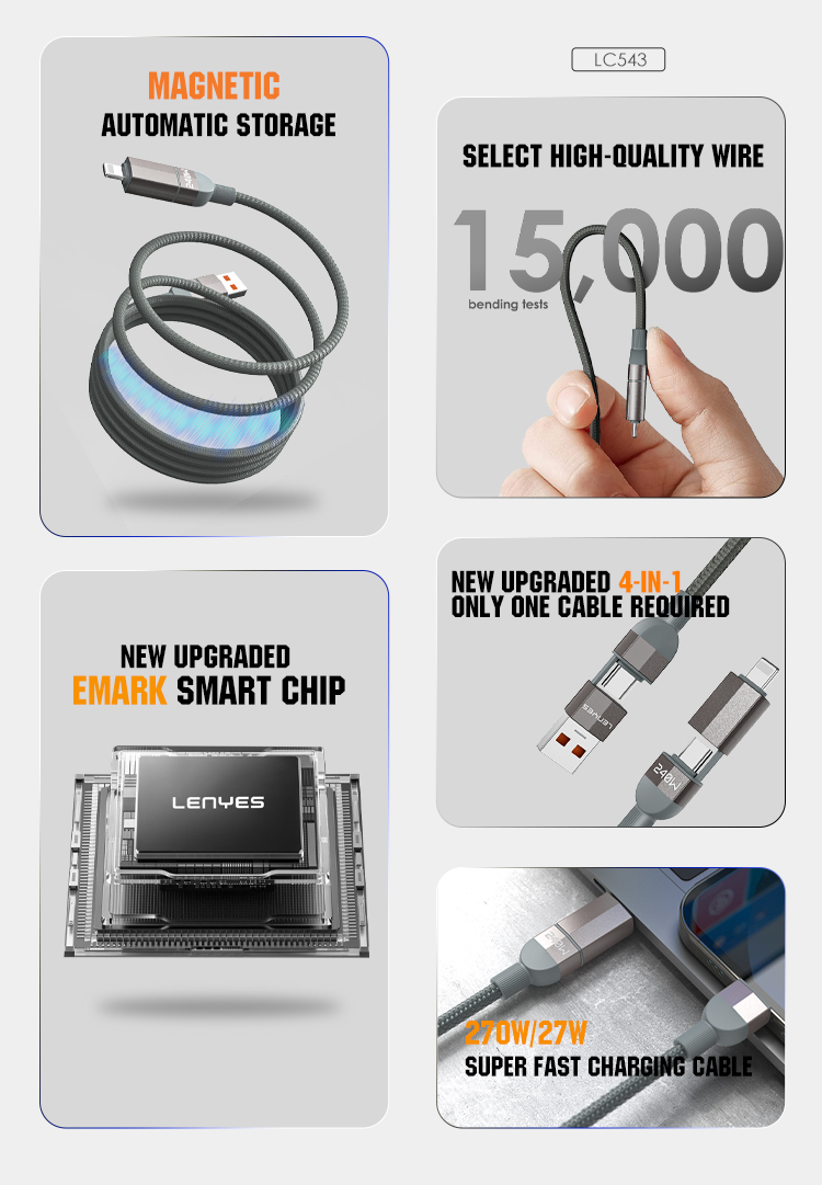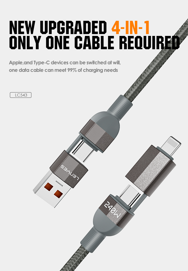 With its USB-A and Type-C inputs, the Lenyes LC543 offers full compatibility with both next-generation and traditional devices. Thanks to the Type-C and Lightning connectors on the output ends, you can charge many devices such as iPhone, Android, tablet, headphones or laptop with the same cable. Don't waste time with ultra-fast charging power supported up to 240W!