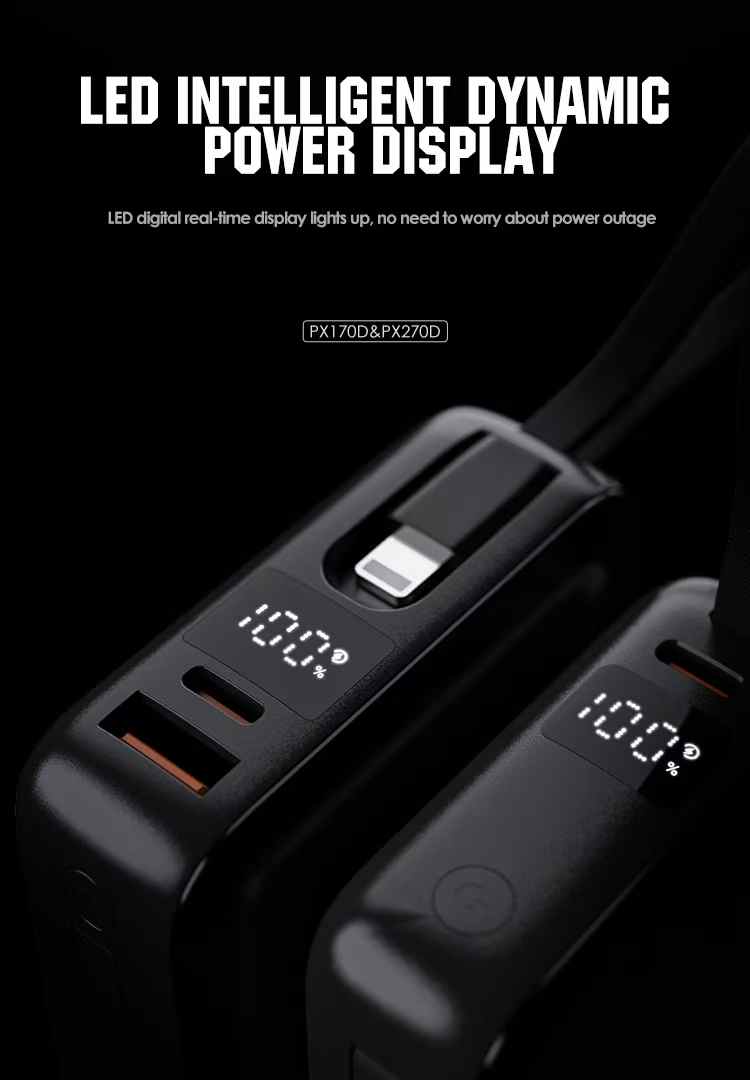 No more tangled wires or forgotten charging cords. The PX169D comes with an integrated USB Type-C cable, giving you the freedom to charge your device anytime, anywhere without the hassle of carrying extra accessories. It’s the ultimate convenience for tech-savvy users who prioritize simplicity and mobility.