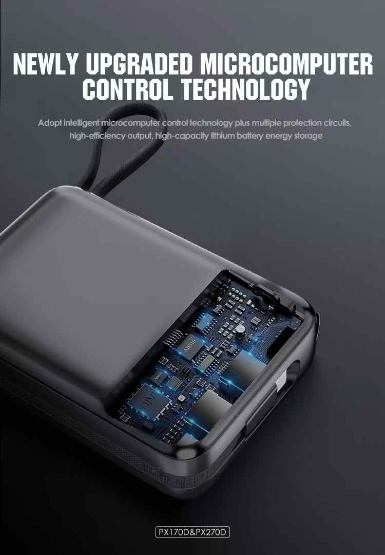 Designed with convenience in mind, the PX170D features an incredibly slim and lightweight build that fits perfectly in your palm, pocket, or clutch bag. Its ergonomic design ensures it never feels bulky — even when you’re packing light. Whether you’re attending meetings, heading out for a quick errand, or traveling across time zones, this power bank travels with you effortlessly.
